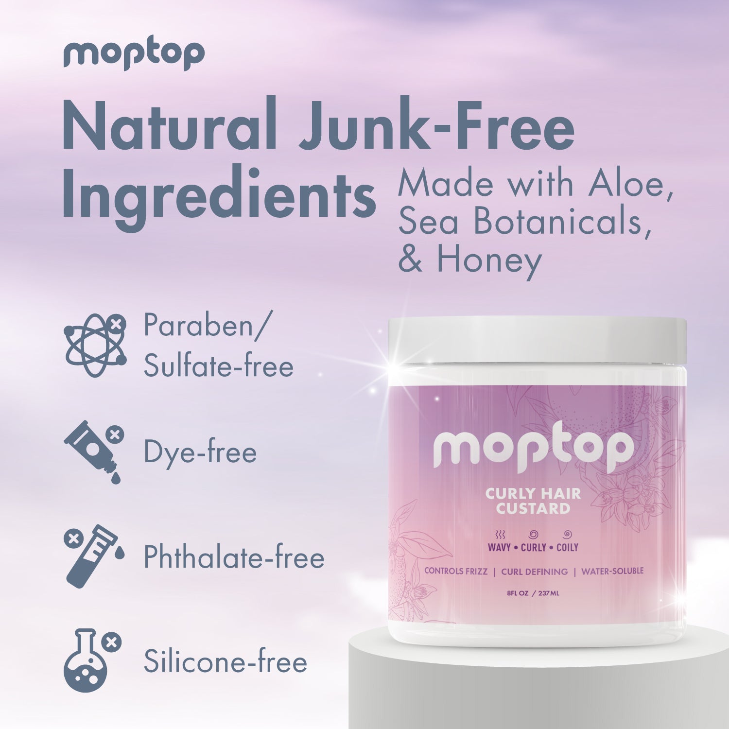Got a sweet spot for moisturized, defined, soft hair? Moptop Curly Hair Custard is a confection your waves, curls, or coilys will savor! A little goes a long way for maximum hold, moisture and shine without heaviness or crunch. Curly hair never felt so good in a citrus kumquat scent.