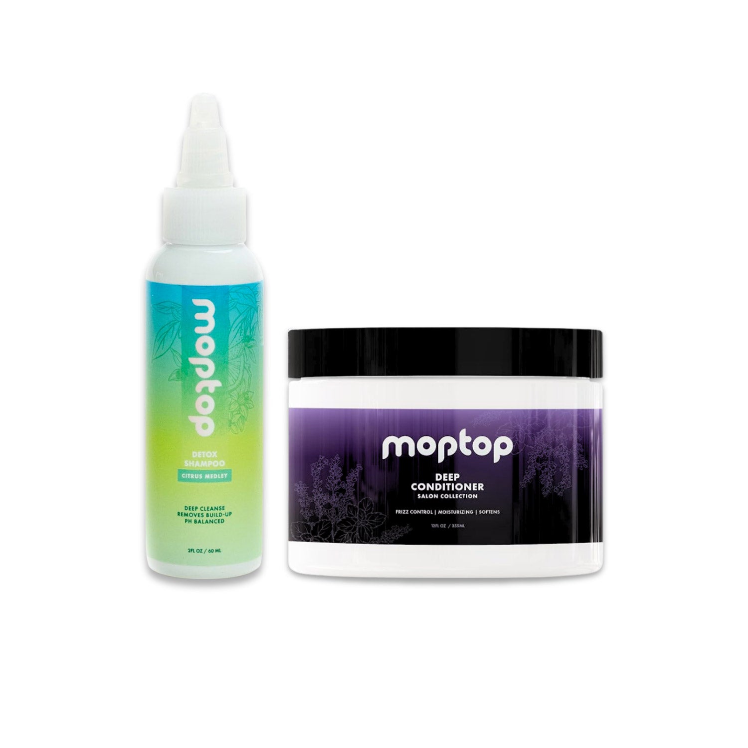 Detox your hair, then reset the moisture! This bundle includes a 2oz Detox Shampoo with a spout top for easy application and our 12oz Salon Deep Conditioner with invigorating lavender mint scent for intense hydration.