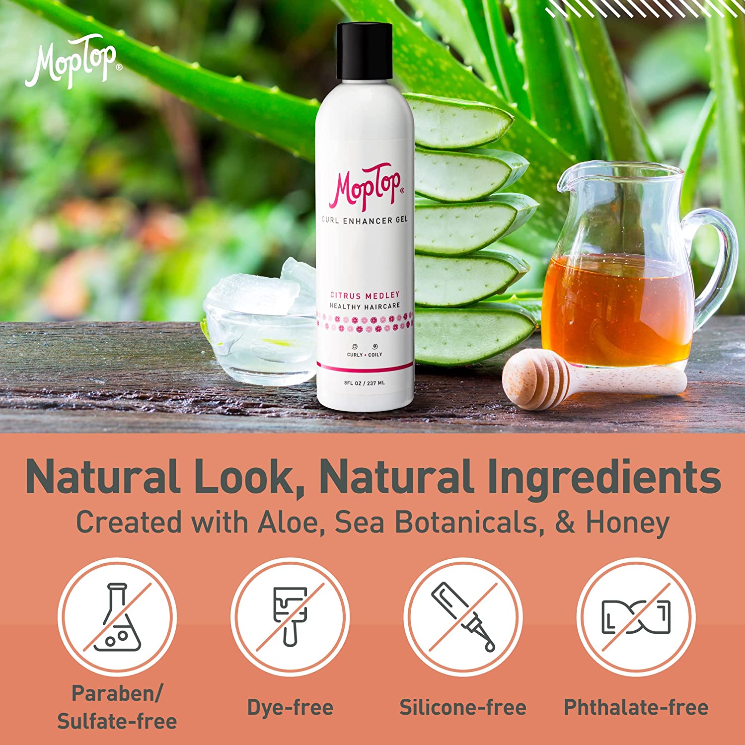 MopTop Curl Enhancer Gel is made with natural, junk-free ingredients. Water-soluble; Silicone-free; Paraben-free; Phthalate-free; Dye-free; Sulfate-free.